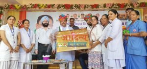 केकड़ी: समारोह के दौरान डॉ. रघु शर्मा का अभिनन्दन करती महिला रोग विभाग की कार्मिक।