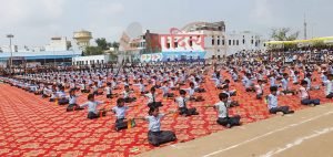 केकड़ीः जिला स्तरीय स्वतंत्रता दिवस समारोह के दौरान सामूहिक व्यायाम का प्रदर्शन करते विद्यार्थी।