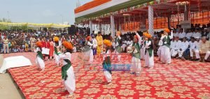 केकड़ीः जिला स्तरीय स्वतंत्रता दिवस समारोह के दौरान सामूहिक नृत्य प्रस्तुत करते बच्चे।