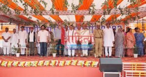 केकड़ीः जिला स्तरीय स्वतंत्रता दिवस समारोह में राष्ट्रगान के दौरान मंच पर मौजूद अतिथिगण।