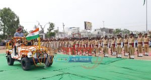 केकड़ी: जिला स्तरीय स्वतंत्रता दिवस समारोह के दौरान परेड का निरीक्षण करते खाद्य एवं नागरिक आपूर्ति मंत्री प्रताप सिंह खाचरियावास।