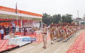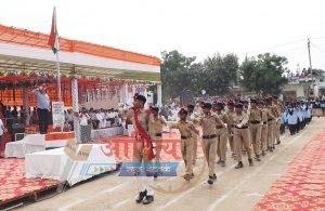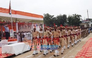 केकड़ीः जिला स्तरीय स्वतंत्रता दिवस समारोह के दौरान मार्चपास्ट करते पुलिस जवान।