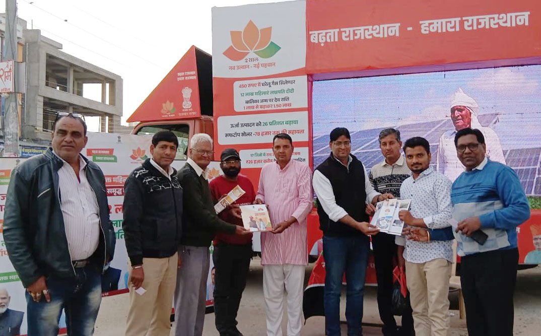 केकड़ी, 14 दिसंबर (आदित्य न्यूज नेटवर्क): भारतीय जनता पार्टी (भाजपा) की राजस्थान सरकार के सफल दो वर्ष पूर्ण होने के उपलक्ष्य में राज्य सरकार द्वारा बीते दो वर्षों में किए गए विकास कार्यों और उपलब्धियों की जानकारी आमजन तक पहुंचाने के उद्देश्य से रविवार को एक विशेष मोबाइल वैन निकाली गई। रविवार सुबह नगर पालिका परिसर से इस मोबाइल वैन को हरी झंडी दिखाकर रवाना किया गया। इस मोबाइल वैन में एक ‘सुझाव पेटिका‘ भी रखी गई है। इसके माध्यम से केकड़ी नगर के विकास के लिए आमजन से सीधे सुझाव मांगे जा रहे हैं।