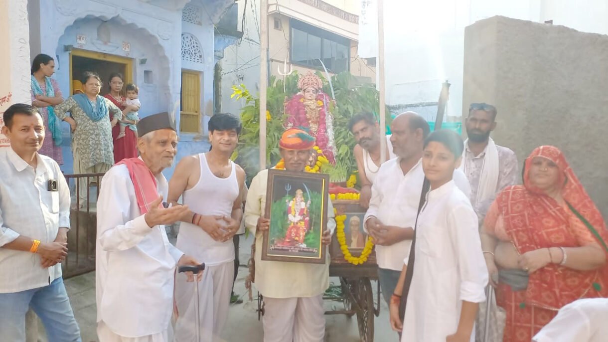 अखाड़ा उस्ताद का किया अभिनन्दन: शोभायात्रा में माता दुर्गा की भव्य मनोहारी प्रतिमा आकर्षण का केन्द्र रही। जुलूस के दौरान नवयुवकों ने अखाड़ा प्रदर्शन किया। इस मौके पर नगर पंडित व चारभुजानाथ मंदिर के कथा व्यास पंडित मुरलीधर दाधीच, पंडित गणेशलाल दाधीच, कवि बुद्धि प्रकाश दाधीच, ज्ञान प्रकाश दाधीच, संयोजक नवल दाधीच, दीपक दाधीच, प्रदीप दाधीच, सफल दाधीच आदि ने अखाड़ा उस्ताद नाथूलाल मेघवंशी का पगड़ी बंधवाकर सम्मान किया। शोभायात्रा के दौरान वातावरण भक्ति व उल्लास से सराबोर रहा। बैंड बाजों की स्वर लहरियों के बीच माताजी के भजन-कीर्तन गूंजते रहे।