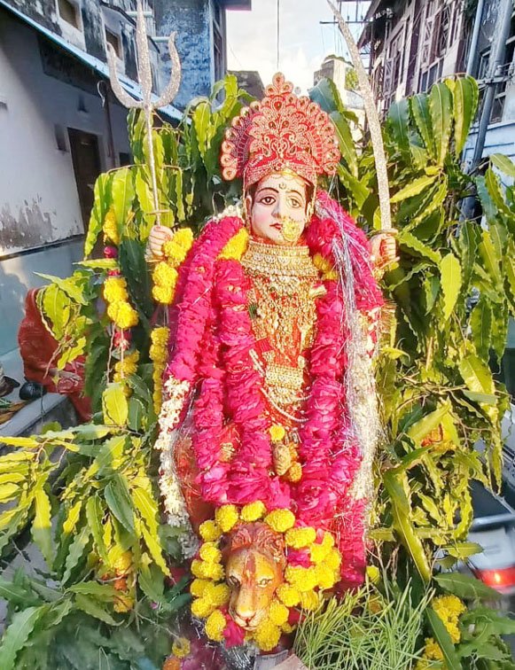 केकड़ी, 30 सितंबर (आदित्य न्यूज नेटवर्क): दुर्गा अष्टमी के पावन पर्व पर मंगलवार को मां दुर्गा की भव्य शोभायात्रा निकाली गई। शोभायात्रा से पहले माता की प्रतिमा का भव्य श्रृंगार किया गया। पूजा अर्चना एवं आरती के बाद शोभायात्रा का शुभारंभ हुआ। शोभायात्रा छीपा मोहल्ला से शुरू हुई। जो चारभुजा मंदिर, माणक चौक, लोढ़ा चौक, खिडक़ी गेट, सदर बाजार, घण्टाघर, लक्ष्मीनाथ मंदिर, अजमेरी गेट होते हुए पुन: छीपा मोहल्ला पहुंचकर सम्पन्न हुई। मार्ग में चारभुजा मंदिर, माणक चौक, घंटाघर स्थित निर्मलेश्वर महादेव मंदिर व बालाजी बगीची मंदिर सहित कई स्थानों पर मंदिरों के पुजारियों व भक्तों ने मां दुर्गा की आरती की।
