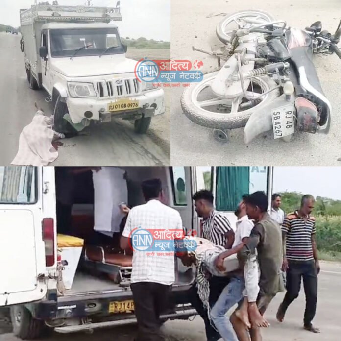 केकड़ी, 03 अक्टूबर (आदित्य न्यूज नेटवर्क): जयपुर-भीलवाड़ा बाइपास पर शुक्रवार को तेज रफ्तार पिकअप की चपेट में आने से एक बाइक सवार युवक की मौके पर मौत हो गई, जबकि उसकी बाइक को दूसरी बाइक से टो कर ले जा रहा उसका साथी घायल हो गया। प्राप्त जानकारी के अनुसार हादसा बघेरा चौराहे के समीप हुआ। हरपुरा निवासी राकेश प्रजापति (19) पुत्र राजाराम की बाइक खराब हो गई। वह अपने साथी उणियारा खुर्द निवासी राजाराम प्रजापति (23) पुत्र कैलाश की बाइक के पीछे अपनी बाइक टो करके ले जा रहा था। बाइपास पर टेल्को वर्कशॉप के समीप ज्योतिबा फुले सर्किल की तरफ से तेज गति से आ रही एक पिकअप ने दोनों बाइक को टक्कर मार दी।