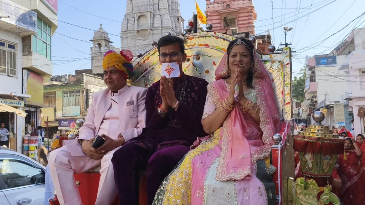 मुमुक्षु व परिवारजन का किया अभिनन्दन: समारोह के दौरान श्री जैन श्वेताम्बर खरतरगच्छ संघ, तपागच्छ संघ, वर्धमान स्थानक संघ, स्थानकवासी महिला मण्डल, बहु मण्डल एवं सोनी परिवार सहित विभिन्न संगठनों ने मुमुक्षु आयुष कोठारी व मुमुक्षु अनीष काठेड़ का शॉल ओढ़ाकर एवं गोद भराई की रस्म कर भावभीना अभिनन्दन किया। इस दौरान जैन समाज व ननिहाल परिवार की ओर से आयुष कोठारी के पिता अशोक कोठारी, माता उषा कोठारी एवं अनीष काठेड़ की माता नीता काठेड़ सहित अन्य परिजनों का शॉल ओढ़ाकर व माल्यार्पण कर बहुमान किया गया।