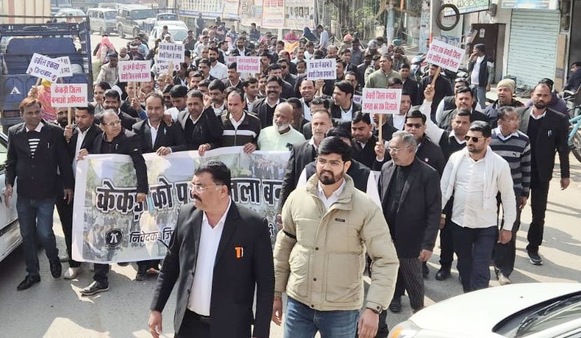 केकड़ी, 28 जनवरी (आदित्य न्यूज नेटवर्क): केकड़ी जिले का दर्जा निरस्त किए जाने की मासिक बरसी पर बार एसोसिएशन के बैनर तले अधिवक्ता समुदाय ने सड़कों पर उतरकर भजनलाल सरकार के खिलाफ हुंकार भरी। वकीलों ने न्यायिक कार्य का पूर्ण बहिष्कार किया तथा शहर में रैली निकालकर अपना आक्रोश जताया। अधिवक्ताओं ने उपखंड अधिकारी दीपांशु सांगवान को मुख्यमंत्री के नाम ज्ञापन सौंपकर केकड़ी को पुनः जिला घोषित करने की मांग की। बार अध्यक्ष सीताराम कुमावत ने कड़े शब्दों में कहा कि जिला दर्जा छीनना सरकार का अनैतिक निर्णय है, जिससे विकास कार्य ठप हो गए हैं। उन्होंने चेतावनी दी कि यदि जिला बहाल नहीं हुआ तो सरकार को इसके दूरगामी राजनीतिक परिणाम भुगतने होंगे व जनता इस छलावे का मुंहतोड़ जवाब देगी।