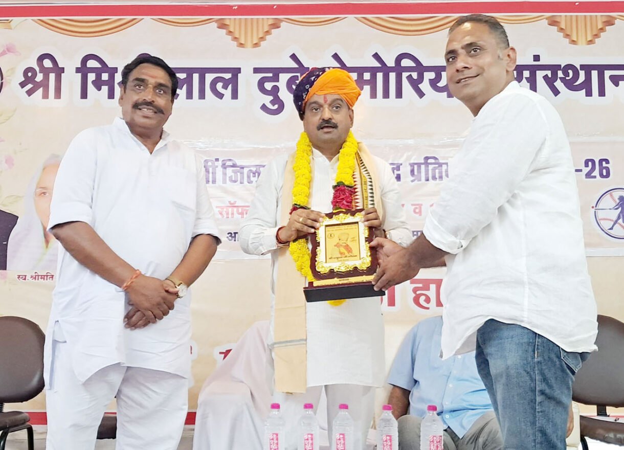 केकड़ी, 25 सितंबर (आदित्य न्यूज नेटवर्क): श्री मिश्रीलाल दुबे उच्च माध्यमिक अकादमी केकड़ी के तत्वावधान में आयोजित 69वीं जिला स्तरीय सॉफ्टबॉल (17 वर्ष व 19 वर्ष छात्र-छात्रा) प्रतियोगिता का समापन समारोह गुरुवार को एमएलडी कॉलेज में आयोजित किया गया। समापन समारोह में विधायक शत्रुघ्न गौतम मुख्य अतिथि एवं नाथूलाल शर्मा व शक्ति सिंह गौड़ विशिष्ट अतिथि के रूप में उपस्थित रहे। अध्यक्षता श्री मिश्रीलाल दुबे मेमोरियल संस्थान के सचिव चंद्र प्रकाश दुबे ने की। विधायक शत्रुघ्न गौतम ने विजेता-उपविजेता टीमों को पुरस्कार देकर सम्मानित किया तथा खिलाड़ियों के जज्बे व खेल भावना की सराहना की। उन्होंने कहा कि ऐसे खेल आयोजन युवाओं में अनुशासन व टीम भावना का विकास करते है, जो उनके भविष्य के लिए बहुत महत्वपूर्ण है।
