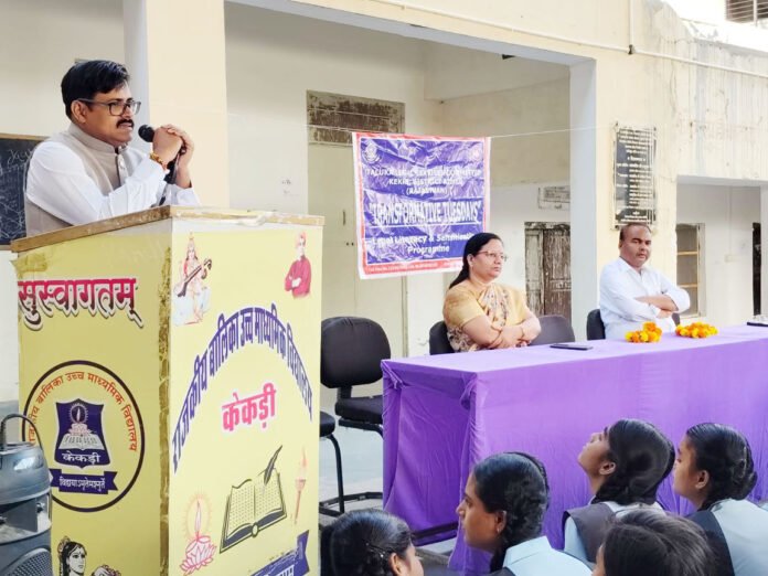 न्यायिक सेवा में करियर की राह: कार्यक्रम के दौरान एक छात्रा द्वारा न्यायिक सेवा में जाने के अवसरों पर पूछे गए प्रश्न का उत्तर देते हुए न्यायाधीश महोदय ने इस क्षेत्र में करियर बनाने की प्रक्रिया विस्तार से समझाई, जिससे छात्राएं काफी प्रेरित नजर आईं। कार्यक्रम का शुभारंभ मां सरस्वती के समक्ष दीप प्रज्वलन के साथ हुआ। शुरूआत में प्रधानाचार्य हेमन पाठक ने पुष्प गुच्छ भेंट कर व उप प्रधानाचार्य शिवशंकर सिंह राठौड़ ने माल्यार्पण व तिलक लगाकर मुख्य अतिथि का स्वागत किया। प्रधानाचार्य ने अपने स्वागत उद्बोधन में शिविर की महत्ता पर प्रकाश डाला। उप प्रधानाचार्य शिवशंकर सिंह राठौड़ ने आभार व्यक्त करते हुए कहा कि न्यायाधीश महोदय द्वारा दी गई जानकारी आज के डिजिटल युग में छात्राओं की सुरक्षा के लिए अत्यंत महत्वपूर्ण है।