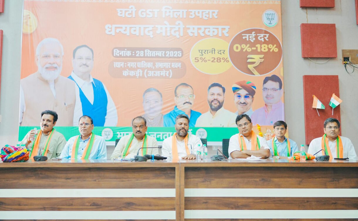 केकड़ी, 28 सितंबर (आदित्य न्यूज नेटवर्क): भारतीय जनता पार्टी के तत्वावधान में ‘जीएसटी बचत उत्सव’ के तहत रविवार को नगर पालिका सभागार में विधानसभा स्तरीय संगोष्ठी का आयोजन किया गया। इस अवसर पर विधायक शत्रुघ्न गौतम मुख्य अतिथि के रूप में उपस्थित रहे। मुख्य वक्ता के रूप में संबोधित करते हुए देवनारायण बोर्ड के अध्यक्ष ओमप्रकाश भडाणा ने कहा कि प्रधानमंत्री नरेन्द्र मोदी के नेतृत्व में देश एक सरलीकृत व अधिक तर्कसंगत कर प्रणाली की ओर बढ़ रहा है। केन्द्र सरकार द्वारा जीएसटी के स्लैब में किया गया बड़ा परिवर्तन कर सुधारों के अगले चरण की शुरुआत है। यह देश की जनता के लिए सरकार की ओर से एक बड़ा ‘बचत उत्सव’ उपहार है। उन्होंने ‘पंच परिवर्तन’ के बारे में बोलते हुए कहा कि यह देश के संपूर्ण व स्थायी विकास का आधार स्तंभ है। यह केवल सरकारी योजना नहीं, बल्कि समाज की चेतना को जागृत कर राष्ट्रीय पुनर्निर्माण की दिशा में उठाया गया एक महत्वपूर्ण कदम है। हम पंच परिवर्तन के माध्यम से एक ऐसे सशक्त, समरस व आत्मनिर्भर भारत का निर्माण करें। जिस पर हमारी आने वाली पीढ़ियां गर्व कर सकें।