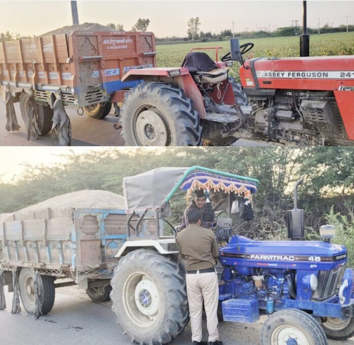 यहां भी की कार्रवाई: इसी प्रकार सरवाड़ तहसील में पुलिस थाना बोराडा के साथ संयुक्त कार्रवाई की गई। टीम ने खनिज बजरी का अवैध परिवहन करते पाए जाने पर दो और ट्रैक्टर-ट्रॉली को जब्त किया। इन दोनों जब्तशुदा वाहनों को भी पुलिस थाना बोराडा की सुपुर्दगी में सौंपा गया है। विभाग ने स्पष्ट किया है कि भविष्य में भी इस प्रकार की अवैध गतिविधियों के खिलाफ निरंतर व प्रभावी कार्रवाई जारी रहेगी।