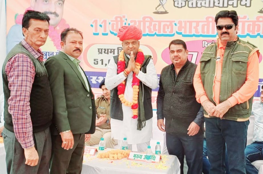 केकड़ी, 27 दिसंबर (आदित्य न्यूज नेटवर्क): केकड़ी में मेजर ध्यानचंद हॉकी क्लब के तत्वावधान में 11वीं अखिल भारतीय हॉकी प्रतियोगिता का उद्घाटन शनिवार को पटेल मैदान में हुआ। समारोह में विधायक शत्रुघ्न गौतम मुख्य अतिथि एवं भाजपा शहर मंडल अध्यक्ष रितेश जैन, नेता प्रतिपक्ष राजेन्द्र चौधरी व पूर्व सरपंच राजवीर हावा विशिष्ट अतिथि तथा व्यवसायी राजीव शाह व संजीव शाह, एमएलडी शिक्षण संस्थान के निदेशक डॉ. अविनाश दुबे व सनातन धर्म शारीरिक शिक्षक प्रशिक्षण महाविद्यालय के दशरथ पारीक भामाशाह अतिथि के रूप में मौजूद रहे।