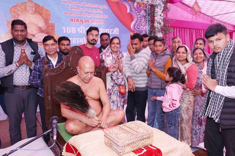 आस्था परिवार का गठन: धर्मसभा से पहले आचार्य पुष्पदंत सागर महाराज के चित्र अनावरण, दीप प्रज्ज्वलन व आचार्य प्रज्ञा सागर महाराज के पाद प्रक्षालन का सौभाग्य पारस मल, महावीर प्रसाद, लाभ चंद, जिनेन्द्र कुमार जैन बघेरा वालों को प्राप्त हुआ। प्रातःकाल में आचार्यश्री के सानिध्य में नित्यनियम पूजा, जिनाभिषेक व शांतिधारा के अनुष्ठान संपन्न हुए। आचार्यश्री के सानिध्य में 50 सदस्यों के गुरु आस्था परिवार का गठन किया गया, जिन्हें स्मृति स्वरूप गुरुदेव के चरण चिह्न भेंट किए गए। मीडिया प्रभारी पारस जैन ने बताया कि शुक्रवार शाम को एक विशेष समारोह में समाज के 65 वर्ष से अधिक आयु के वृद्धजनों का सम्मान किया जाएगा।