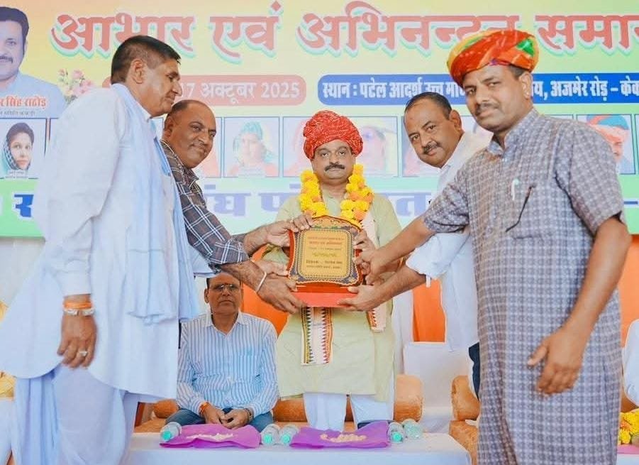 केकड़ी, 17 अक्टूबर (आदित्य न्यूज नेटवर्क): राजस्थान सरकार द्वारा पंचायतों में सरपंचों को प्रशासक नियुक्त किए जाने पर केकड़ी पंचायत समिति क्षेत्र के सरपंचों की ओर से शुक्रवार को अजमेर रोड स्थित पटेल आदर्श विद्या निकेतन स्कूल में एक भव्य अभिनंदन समारोह का आयोजन किया गया। समारोह में प्रशासकों (सरपंचों) व सरपंच प्रतिनिधियों ने केंद्रीय कृषि राज्य मंत्री भागीरथ चौधरी व विधायक शत्रुघ्न गौतम का 51 किलो की विशाल माला पहनाकर अभिनन्दन किया। मुख्य अतिथि विधायक शत्रुघ्न गौतम ने सरपंचों को बधाई देते हुए कहा कि सरंपच का चुनाव बिना राजनीति पार्टी के होता है। सरपंच ग्राम स्तर पर सरकार की सबसे मुख्य कड़ी होते हैं। ऐसे में गांवों में विकास कार्य कराने का अवसर सरपंचों को मिलता है। अब जब सरकार ने सरपंचों को प्रशासक के तौर पर नियुक्त कर दिया है तो उनकी जिम्मेदारी बढ़ गई है। उनके पास अपने कार्यकाल में अधूरे रह गए विकास कार्यों को पूरा करने का मौका है।