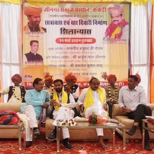 केकड़ी, 14 मार्च (आदित्य न्यूज नेटवर्क): जीनगर समाज संस्थान, केकड़ी (आंवटित भू-खण्ड पर) छात्रावास एवं चारदीवारी निर्माण कार्य का शिलान्यास समारोह गुरुवार को विधायक शत्रुघ्न गौतम के मुख्य आतिथ्य में आयोजित किया गया। जयपुर—अजमेर बाइपास पर स्थित प्रेम मैरिज गार्डन में आयोजित कार्यक्रम में कपासन के विधायक अर्जुन लाल जीनगर अति विशिष्ट अतिथि एवं नगर परिषद केकड़ी के सभापति कमलेश साहू विशिष्ट अतिथि के रूप में उपस्थित रहे। अध्यक्षता समाज अध्यक्ष रतन पंवार ने की।