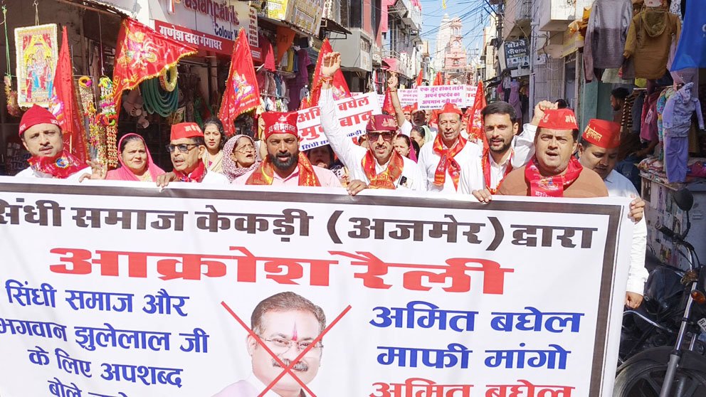 समाज में व्याप्त है रोष: ज्ञापन में बताया कि अमित बघेल की टिप्पणी से समाज की धार्मिक भावनाओं को गहरी ठेस पहुंची है। जिसके कारण समाज में तीव्र रोष व्याप्त है। रैली को संबोधित करते हुए बलराज मेहरचन्दानी, एडवोकेट मनोज आहूजा सहित अन्य वक्ताओं ने प्रशासन से अमित बघेल के विरुद्ध त्वरित व कड़ी से कड़ी कार्यवाही करने की मांग की, ताकि भविष्य में इस तरह की घटनाओं की पुनरावृत्ति नहीं हो। इस विरोध प्रदर्शन में बड़ी संख्या में सिंधी समाज के महिला-पुरुषों की भागीदारी रही।