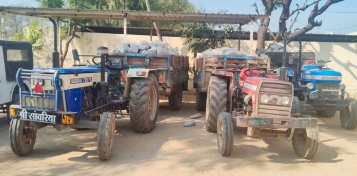 केकड़ी, 17 जनवरी (आदित्य न्यूज नेटवर्क): अवैध खनन के विरुद्ध चलाए जा रहे विशेष अभियान के तहत सराना थाना पुलिस ने अवैध रूप से पत्थर का खनन कर परिवहन कर रहे तीन ट्रैक्टर-ट्रॉलियों को जब्त करने में सफलता हासिल की है। थानाधिकारी ममता शर्मा ने बताया कि गश्त व चेकिंग के दौरान पुलिस टीम ने अवैध पत्थरों से भरी तीन ट्रैक्टर-ट्रॉलियों को रुकवाया। चालकों द्वारा खनन से संबंधित वैध दस्तावेज पेश नहीं करने पर पुलिस ने तीनों वाहनों को डिटेन कर लिया। पुलिस ने जब्त शुदा वाहनों को सुरक्षा के लिहाज से सराना थाने में खड़ा करवा दिया है।