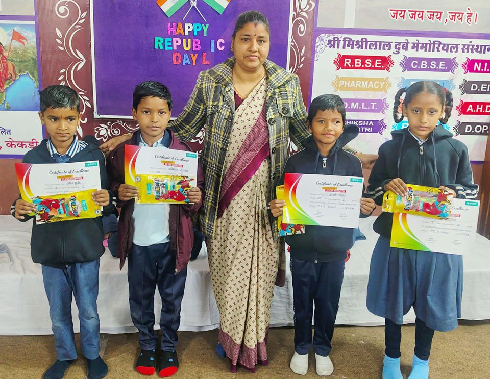 प्रतिभा निखारने का माध्यम: इस उपलब्धि पर विद्यालय के प्रधानाचार्य नरेंद्र कुमार पारीक व विनिता जोशी ने सभी विजेताओं व प्रतिभागियों को बधाई देते हुए उनके उज्ज्वल भविष्य की कामना की। उन्होंने कहा कि इस प्रकार की प्रतियोगिताएं बच्चों की छिपी हुई प्रतिभा को निखारने व उनमें आत्मविश्वास भरने का सशक्त माध्यम हैं। संस्थान ने इस सफल आयोजन के लिए गर्ग पेपर इंडस्ट्रीज के सहयोग के प्रति आभार जताया।