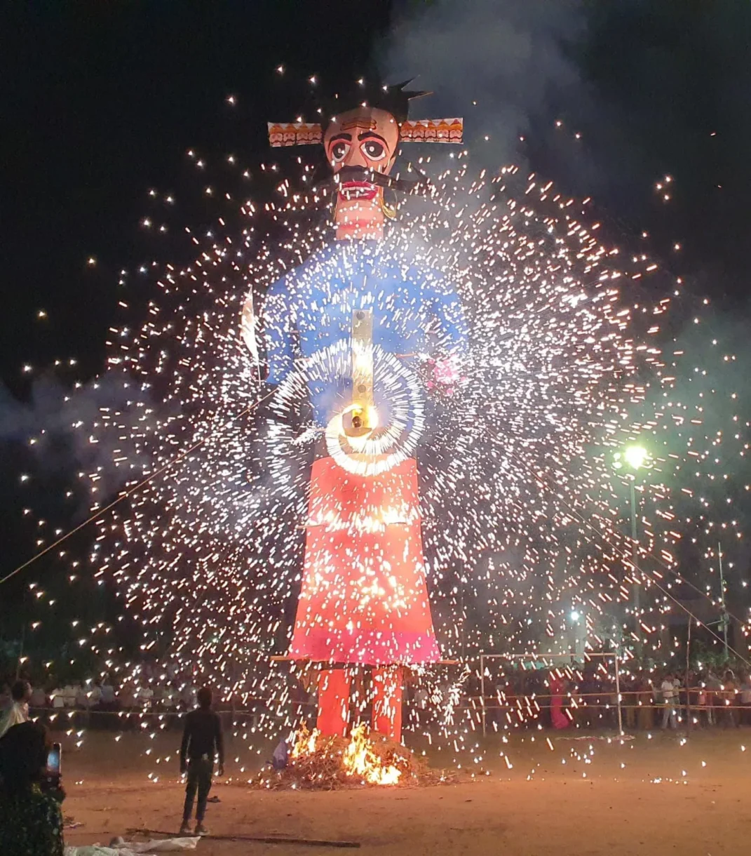 विभिन्न प्रसंगों का किया जीवन्त मंचन: जहां स्थानीय कलाकारों ने रामायण के विभिन्न प्रसंगों मारिची वध, सीता हरण, जटायु वध, लंका दहन, लक्ष्मण मुर्च्छा व राम रावण युद्ध का जीवन्त मंचन किया। इसके बाद भगवान राम ने अग्नि बाण चला कर रावण का वध किया। अग्नि बाण चलते ही रावण, कुम्भकर्ण व मेघनाद के पुतले धूं-धूं कर जल उठे। इस मौके पर विधायक शत्रुघ्न गौतम मुख्य अतिथि के रूप में उपस्थित रहे।