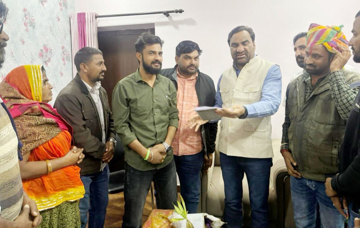 केकड़ी, 19 नवम्बर (आदित्य न्यूज नेटवर्क): तथाकथित लाल धागा बाबा की मनमानी से प्रताड़ित होकर सावर उपखंड कार्यालय के बाहर जारी धरना 13 वें दिन भी जारी रहा। 80 वर्षीय बुजुर्ग छोटूलाल व उनकी पत्नी शायरी देवी अपने परिवार के साथ बुधवार को भी धरने पर बैठे रहे। बुजुर्ग दंपति व उनके परिजन 500 साल पुराने भैरुजी मंदिर को तोड़ने के मामले में कथित लाल धागा बाबा को गिरफतार करने की मांग कर रहे है। प्रशासनिक कार्यवाही नहीं होने से निराश धरनार्थियों के परिजनों ने बुधवार को राष्ट्रीय लोकतांत्रिक पार्टी (RLP) के सुप्रीमो व नागौर सांसद हनुमान बेनीवाल से मिलकर न्याय की गुहार लगाई। बेनीवाल ने पीड़ित परिवार को आश्वासन दिया कि कथित लाल धागा बाबा से पीड़ित लोगों को न्याय दिलाने के लिए वे उनके साथ है।