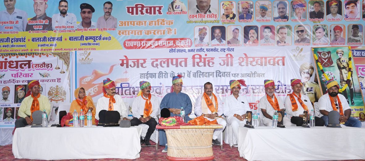 वीरता का किया यशोगान: इसके बाद रावणा राजपूत संस्था भवन में एक समारोह का आयोजन किया गया। जिसमें समाज के वरिष्ठ नागरिकों के साथ-साथ विभिन्न क्षेत्रों में उत्कृष्ट प्रदर्शन करने वाली प्रतिभाओं को भी सम्मानित किया गया। विधायक शत्रुघ्न गौतम ने अपने उद्बोधन में मेजर दलपतसिंह के वीरतापूर्ण कार्यों की सराहना की और उन्हें अनुकरणीय बताया। उन्होंने संस्था भवन के विकास के लिए 15 लाख रुपए और मेजर दलपतसिंह सर्किल पर एक भव्य स्वागत द्वार बनाने की घोषणा की।