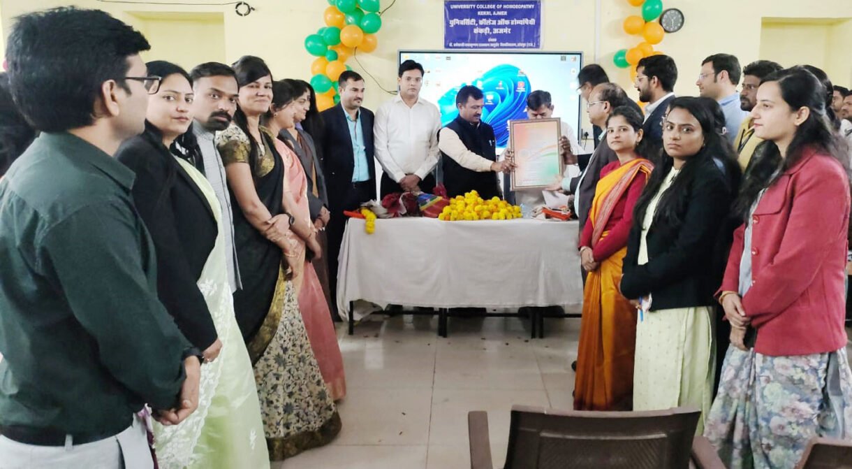 चर्म रोग सुपरस्पेशलिटी विभाग का उद्घाटन: इस अवसर पर कुलगुरु ने संघटक चिकित्सालय में नवीन चर्म रोग सुपरस्पेशलिटी बहिरंग विभाग का उद्घाटन किया। उन्होंने कहा कि होम्योपैथी चिकित्सा चर्म रोगों में बहुत कारगर है तथा इस सुपरस्पेशलिटी के शुरू होने से क्षेत्र के मरीजों को काफी लाभ मिलेगा। इसी के साथ उन्होंने महाविद्यालय में फार्माकोविजिलेंस केंद्र का भी उद्घाटन किया तथा आम जनता को जागरूक करने के लिए फार्माकोविजिलेंस कैलेंडर का विमोचन किया। इस अवसर पर छात्र-छात्राओं ने विभिन्न सांस्कृतिक कार्यक्रम प्रस्तुत किए।