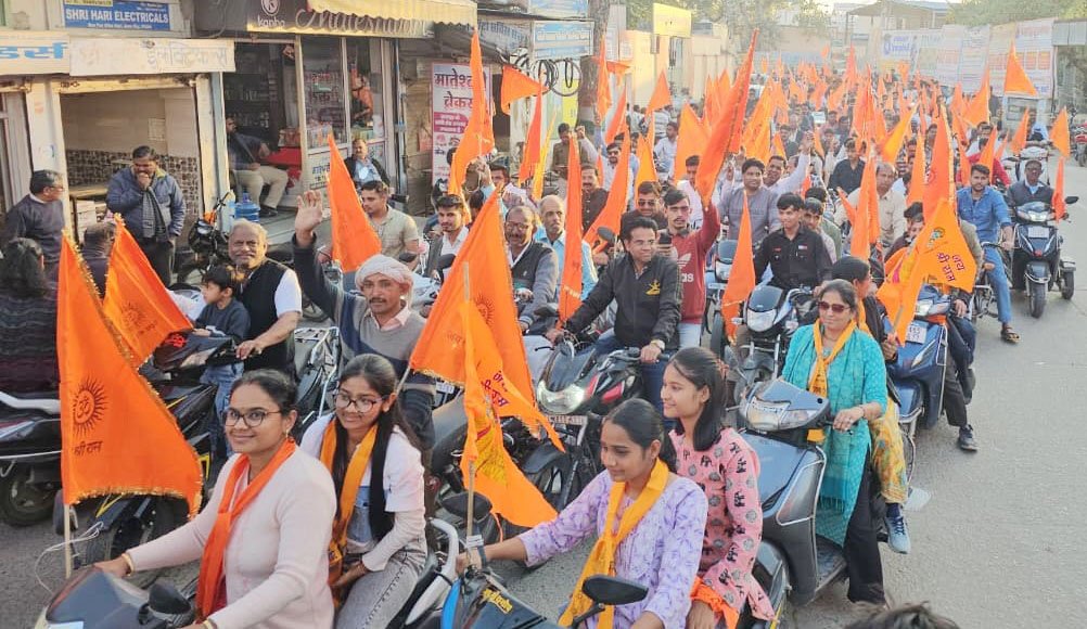 केकड़ी, 07 फरवरी (आदित्य न्यूज नेटवर्क): विराट हिंदू सम्मेलन की पूर्व संध्या पर शनिवार शाम को सर्व हिंदू समाज के तत्वावधान में एक भव्य वाहन रैली का आयोजन किया गया। इस रैली ने पूरे शहर को भक्ति व उत्साह के रंग में सराबोर कर दिया। रैली का आगाज पटेल मैदान से हुआ जहां सबसे आगे मुख्य ट्रैक्टर व डीजे वाहन तथा उसके पीछे सैकड़ों दुपहिया वाहनों का लंबा काफिला चल रहा था। रैली में शामिल श्रद्धालु हाथों में केसरिया पताकाएं थामे हुए थे। रैली के दौरान भारत माता की सजीव झांकी सबके आकर्षण का केंद्र रही, वहीं एमएलडी संस्थान द्वारा सजाई गई मां दुर्गा की मनोहारी झांकी ने भी श्रद्धालुओं का मन मोह लिया।